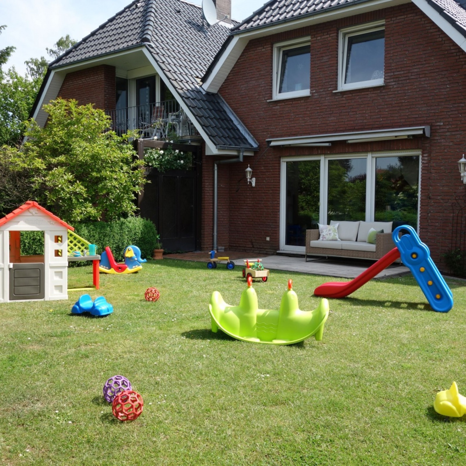 Ich biete Ihrem Kind viel Platz, um sich auf verschiedene Arten zu entfalten. Für die Gruppe stehen uns 3 Räume mit einer Fläche von insgesamt ca. 65 Quadratmetern zur Verfügung. Die Kindertagespflege findet in meinen Räumen statt. Eine moderne Einrichtung und Ausstattung sorgen dafür, dass sich Ihr Kind rundum wohl fühlt. Natürlich habe ich entsprechende Sicherheitsmaßnahmen ergriffen, um Unfälle zu vermeiden und die Kinder während des Spielens zu schützen. Die Räume sind an die Bedürfnisse der Kinder angepasst. Ein eingezäunter Garten, der direkt vom Spielzimmer aus betreten werden kann, lädt zum toben ein.